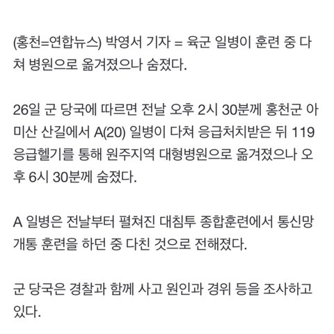 11월 26일 속보 기사를 통해 군부대 사망사건이 보도됐지만, 기사에는 실제 사건 발생과 비교해서 많이 생략되고, 왜곡된 내용 뿐이었습니다.