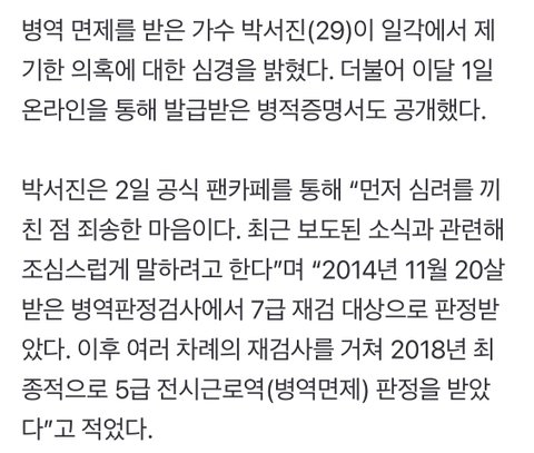 박서진 병역면제 의혹 일단락 되나, 증명 서류까지 공개