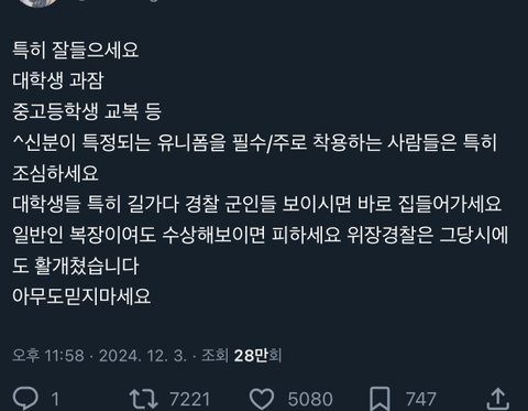 비상 계엄 해제되기 전에 올라온 글이잖아... 트위터 애들 오바떠는거 나도 보기 싫은데 저땐 저런글 올라올만 했음ㅋㅋㅋㅋ