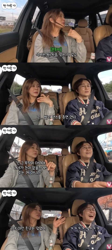이어 "'베르사유의 장미'에서 바지를 입는데 매일 입히는 의상팀 말로는 골반이 커지고 허리 품이 많이 줄었다고 한다. 벨리는 원래 뱃살이 조금 있어야 한다. 세계 챔피언 이런 사람들 보면 홀쭉한 사람이 없다"며 "그렇게 살집이 있는데도 밸리를 하면 허리는 항아리처럼 들어가게 된다"며 송은이에게 적극 전파했다.