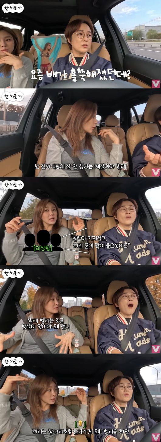 그러면서 송은이를 향해 “그래서 같이 벨리를 했으면 좋겠다. 언니는 체형이 벨리 해야 되는 체형이다. 여자의 내전근 중에서도 가장 그냥 정말 가운데 있는 것들을 아주 꽈리를 트는 아주 쫀쫀하게 해주는 거기 때문에 멀리 봐서는 케겔 운동도 굉장히 좋다”라고 어필해 웃음을 안겼다.