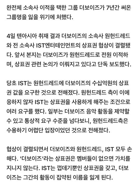아 근데 딴건 모르겠고 진짜 회사에 안넘기고 멤버들한테 상표권준게 너무 감동된다.. 끝이 너무 좋다