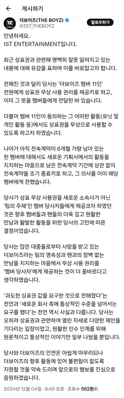 더보이즈 IST 반박문
