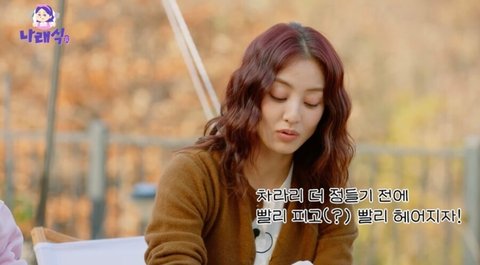 4일 유튜브 채널 '나래식'에는 '트와이스 리더하다가 제 명보다 5년 일찍 죽을 거 같아요' 영상이 업로드됐다. 이날 박나래와 트와이스 지효는 함께 캠핑에 나섰다. 음식 준비를 뚝딱 뚝딱 잘 하는 지효에 대해 박나래는 "일 머리가 있다"라고 칭찬했고, 지효는 "알바 하는 예능 프로그램 해보고 싶었다"라며 게스트하우스에 대해 언급했다.