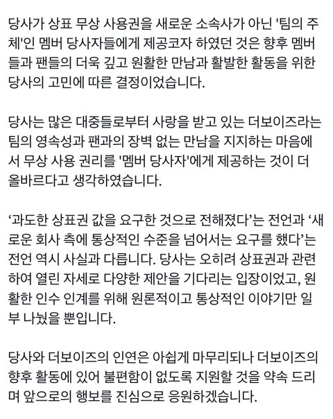 더보이즈 상표권 멤버들한테 줌