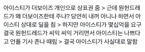 7년간 더보이즈라는 브랜드를 여기까지 쌓아올린 건 아이스티인데 원헌드레드가 무슨 자격으로 달라하는거냐...?