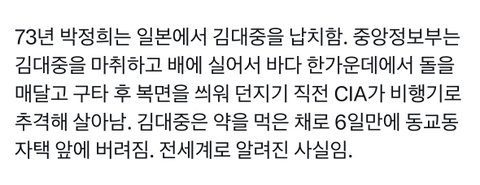 김대중 수면 위로 못떠오르게 돌 매달아서 던지려고 한거 ㅈㄴ 악랄하다 미친거 아님? 이런일이 있었다는거 오늘 처음 앎 + 10대판에 글 썼는데 왜 댓글엔 틀딱들밖에 없냐…ㅋㅋ