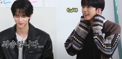 같은 신인이지만 그래도 형이라고 눈빛으로 눈치 주고 있는 신유