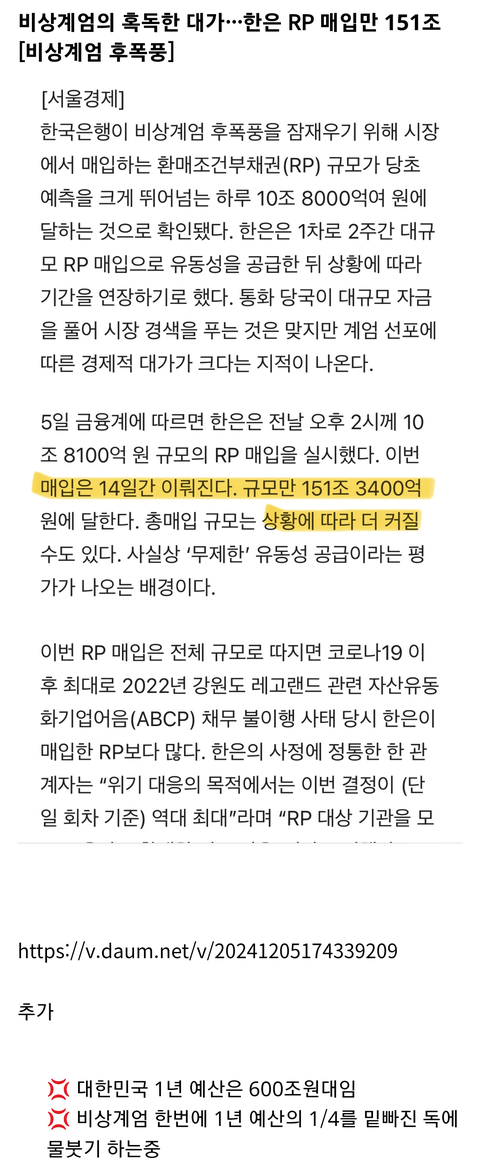 윤석열 계엄령으로 최소 '151조+@' 녹을 예정
