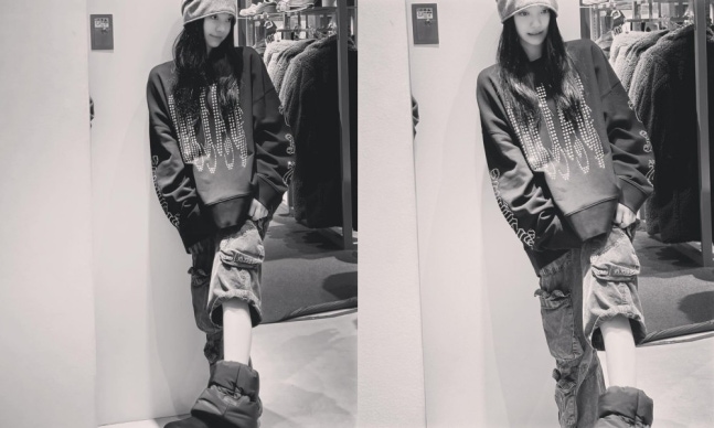 닝닝은 전신사진도 공개하며, 남다른 패션센스를 자랑했다. 비니를 착용한 그는 품이 큰 상의와 무릎까지 오는 바지를 착용해 '힙'한 매력을 선보였다.