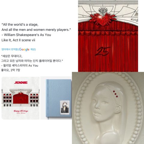이번 제니 누데이크 팝업 오브제들 제니 굿즈 문구 같은 거 모아보면 본문 막짤 연극장도 셰익스피어 관련임… 또 며칠전에 뜬금없이 제니 인스타에 오리온자리 사진 올라왔는데 이것도 먼가 스포인듯 아직 정확히는 몰겠지만 일단 개같이 기대 ㅎ 앨범 예판 빨리 떠라ㅏ