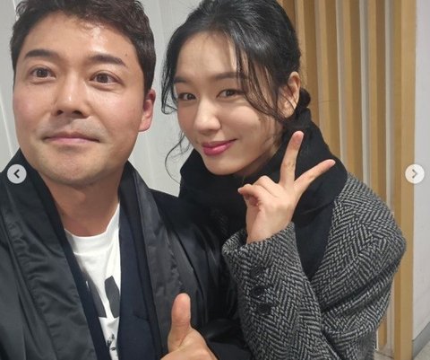 사진 속 전현무는 안은진과 함께 다정하게 서있다. 전현무는 안은진을 향해 엄지를 치켜세우며 미소 짓고 있다. 안은진 역시 발랄한 모습을 보여주며 눈웃음을 짓고 귀여운 미모를 자랑한다.
