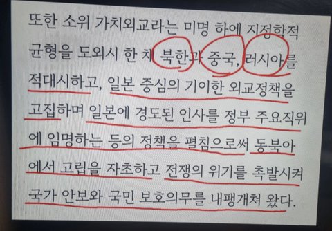 민주당에서 작성한 탄핵안인데 이상하리만치 일본편드는게 이상하긴 했음