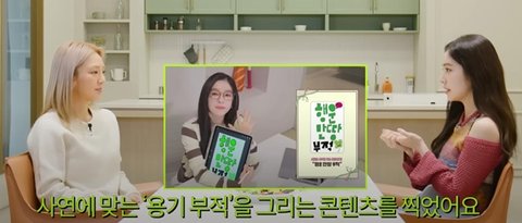 그 사연에 맞는 용기 부적을 그려주는 컨텐츠를 찍은 아이린