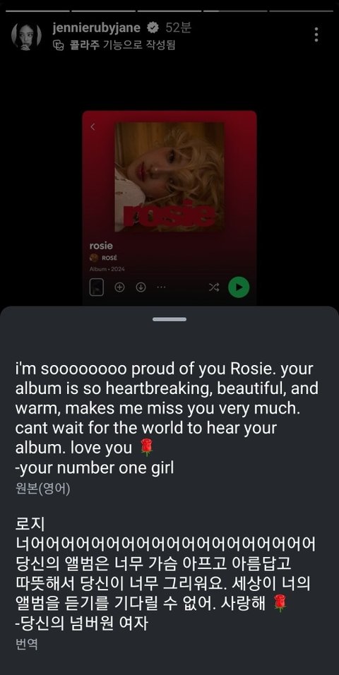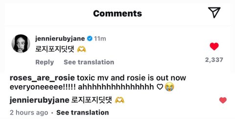로제 인스타에 댓글도 남기고 감