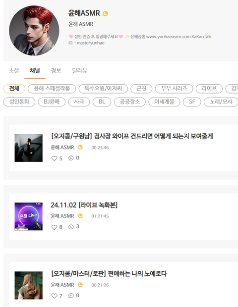 asmr 들으려고 찾아보다가 익숙한 프로필 보고 반가워서 눌러봄