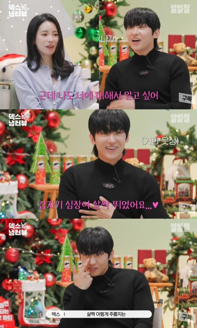 사진=‘일일칠’ 채널 ‘덱스의 냉터뷰’ 영상 캡처두 사람은 콘텐츠 콘셉트에 맞춰 반말로 대화를 했다. 임지연이 “난 너에 대해서 알고 싶어”라고 말하자, 덱스는 “갑자기 심장이 빨리 뛰었다”라고 반응했다.