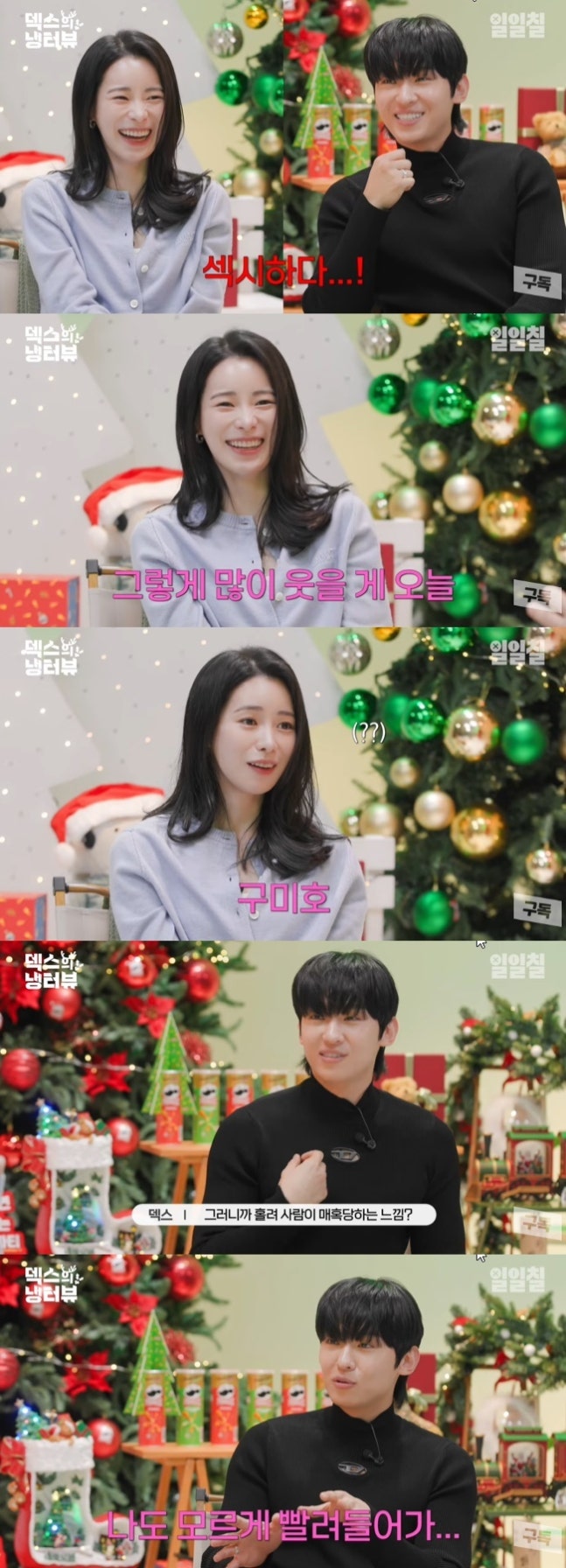 사진=‘일일칠’ 채널 ‘덱스의 냉터뷰’ 영상 캡처그때 덱스는 “누나 웃을 때 코에 살짝 주름지는 포인트가 뭐랄까. 섹시하다. 너무 매력 있는 것 같다”라고 칭찬했다. 임지연은 “그렇게 많이 웃을게 오늘”이라고 화답했다.