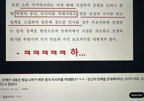 이건 대통령 입장에서 반국가세력으로 낙인 찍을 수 밖에 없는 사안이라고 봅니다.
