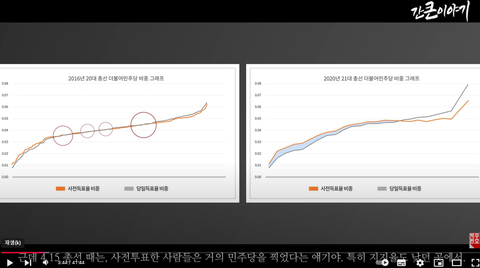 - 이상한 그래프: 더불어민주당이 사전투표에서만 일관적으로 높은 득표율을 보임.