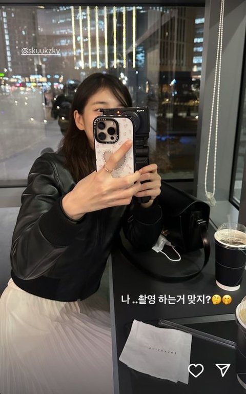 공개된 사진에는 수지의 모습이 담겨 있었다. 수지는 한 손에는 휴대전화, 또 다른 손에는 카메라를 들고 송혜교 쪽을 향하고 있었다. 환하게 미소 짓는 얼굴이 살짝 드러나 즐거운 시간을 보내고 있음을 알 수 있다. 함께 카페에 간 송혜교가 카메라 두 개로 자신을 찍는 수지의 모습을 공개한 것.