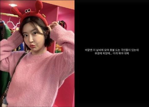 레이디제인은 7일 "바깥엔 이 날씨에 모여 촛불 드는 국민들이 있는데 부결에 퇴장에…이게 뭐야 대체"라고 답답한 심경을 토로했다.