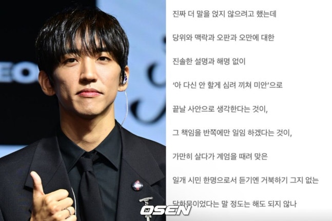 가수 이승윤은 7일 오전 개인 SNS에 "진짜 더 말을 얹지 않으려고 했는데. 당위와 맥락과 오판과 오만에 대한 진솔한 설명과 해명 없이 '아 다신 안 할게 심려 끼쳐 미안'으로 끝날 사안으로 생각한다는 것이, 그 책임을 반쪽에만 일임 하겠다는 것이, 가만히 살다가 계엄을 때려 맞은 일개 시민 한명으로서 듣기엔 거북하기 그지 없는 담화문이었다는 말 정도는 해도 되지 않나"라는 글을 남겼다. 이날 오전 10시 윤석열 대통령이 대국민 담화 생중계를 통해 지난 비상계엄 사태에 대해 이렇다 할 법적 책임 없이 짧은 사과를 표명한 것에 대해 분노한 것이다.