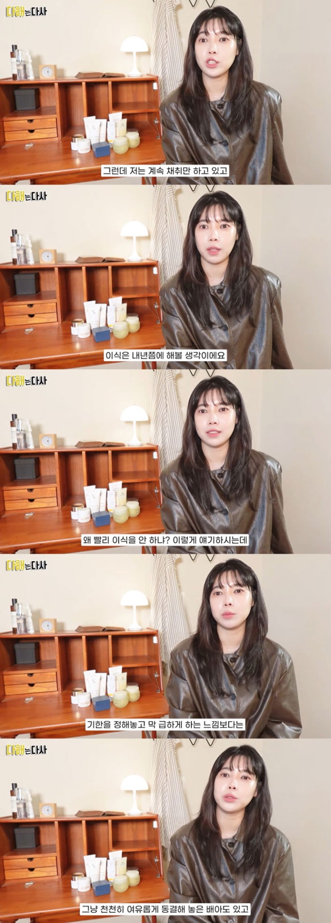 그러면서 "기한을 정해놓고 급하게 하는 느낌보다는 천천히 여유롭게 (하고 싶다). 동결한 배아도 있고"라고 덧붙였다.