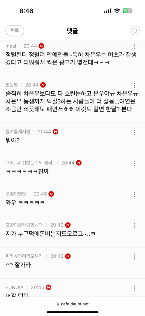 여시에서 탄핵지지 안하고 화보나 올린다고 천플 찍더니 인스타까지 공격중