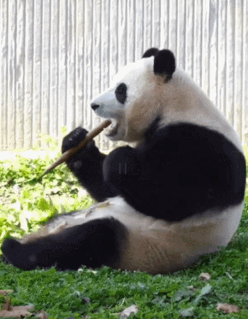 개의치않고 푸바오 코앞에서 대나무를 내리치며