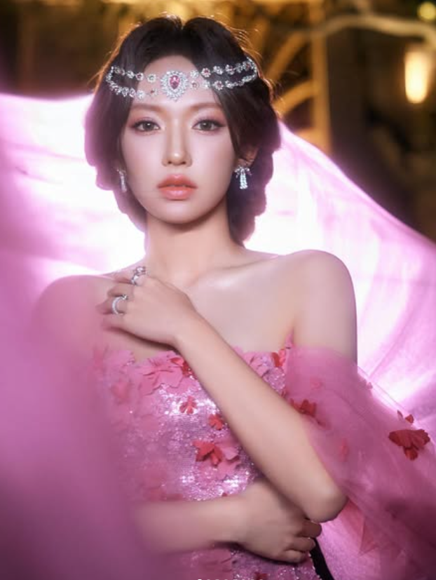 화보로 보이는 사진에서 성소는 분홍색 드레스에 왕관과 같은 머리띠를 쓴 채 공주님으로 변신한 모습이다.