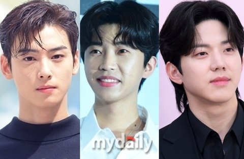 왼쪽부터 그룹 아스트로 겸 배우 차은우, 가수 임영웅, 밴드 데이식스 도운