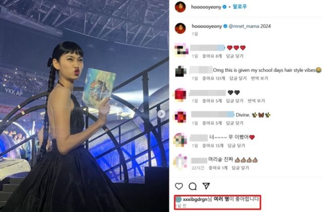 지드래곤은 정호연이 '2024 마마 어워즈'에 참석한 사진을 계정에 올리자 '좋아요'를 눌른 것으로 보인다.