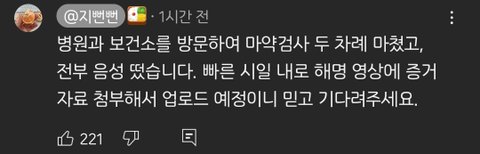 지뻔뻔 마약검사 음성 나왔대