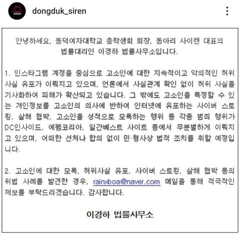 입장문에도 나와있듯이, 비난하는 대상의 신상이 특정되는 경우에만 법적 조치가 가능해. "폭동덕 페미들 인생 조졌어!" 정도로는, 고소 못해. ㅋㅋㅋㅋ 폭도들의 신상은, 피해자인 학교 관계자들만 파악하고 있겠지 ㅋㅋㅋㅋ
