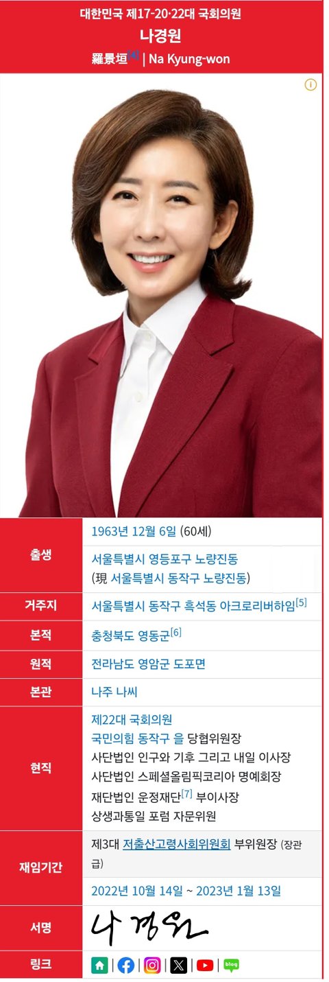 (사진4 설명) 나경원(羅景垣, Na Kyung-won) 대한민국 제17-20·22대 국회의원 <출처: NAVER 나무위키>