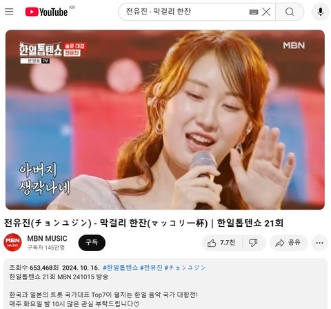 (사진8 설명) 전유진(チョンユジン) - 막걸리 한잔(マッコリ一杯)|한일톱텐쇼 21회