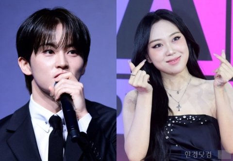 그룹 NCT 마크와 가수 이영지가 입을 맞춘다.