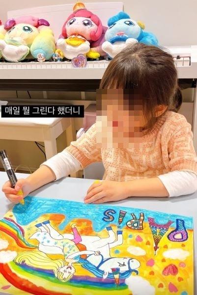 최선정은 최근 자신의 소셜미디어를 통해 "매일 뭘 그린다 했더니"라는 글과 함께 그림을 그리는 딸의 모습을 담았다.