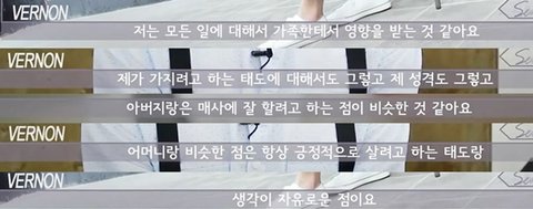 버논이 태어난 건 미국이지만 5살 떄 한국에 와서 이국적인 외모 때문에 어릴 때부터 주변 반응 때문에 힘들었다고 함