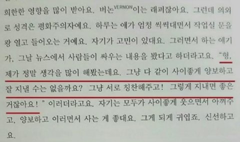 부모님의 영향을 받아 팀내에서도 팬들 사이에서도 ㄹㅇ 유명한 평화주의자