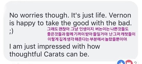 버논이 방송에서 무례한 말 들었을 때 캐럿들이 대신 화내니까 그거 보고 하신 말