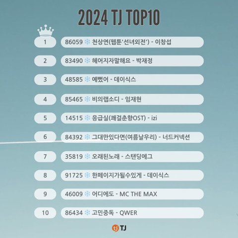 2024 TJ노래방 연말결산 가장 많이 불린곡 top10