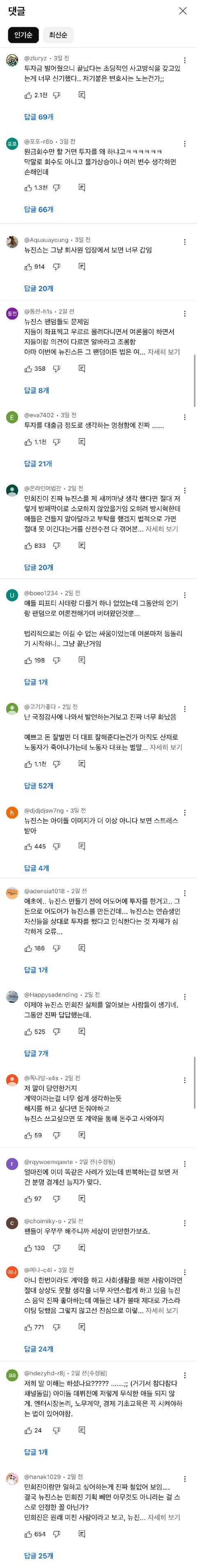 지금 유튜브에서 여론은 뉴진스 편인데