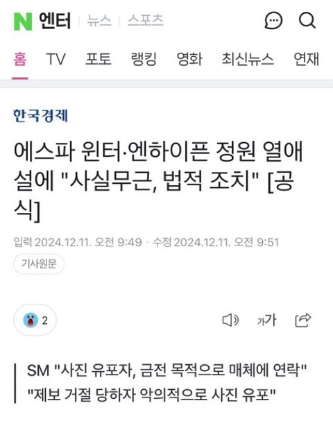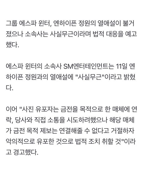 에스파 윈터 엔하이픈 양정원 공식입장 떴다