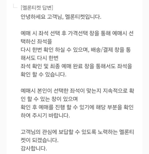 전화 문의를 하고 생각할수록 어이가 없었다. 아니 좌석 선택하면 결제창으로 넘어가고 거기서 내가 선택한 좌석 보이는걸 모르는 팬이 어디 있을까 싶고 결제창에서 허둥거리다가 튕기는 경우도 있으니 일단 결제창으로 가면 당연히 내가 잡은 자리겠지 하고 프로그램의 시스템을 믿고 그냥 넘겼는데 이런 일이 발생하니 억울하다고 밖에는 말을 못 할 거 같다. 그리고 결제창으로 넘어가서도 내가 선택한 자리가 아니고 이상한 자리가 있으면 어떤 팬이 거기서 결제창을 나올까 싶다. 애초에 거기서 나오면 원래 선택한 자리는 물론이고 지금 결제창에 나와있는 자리도 물 건너 가는데 그리고 우리가 주장하는 건 애초에 결제창으로 넘어갈 때 문제가 있다는 것이었다.