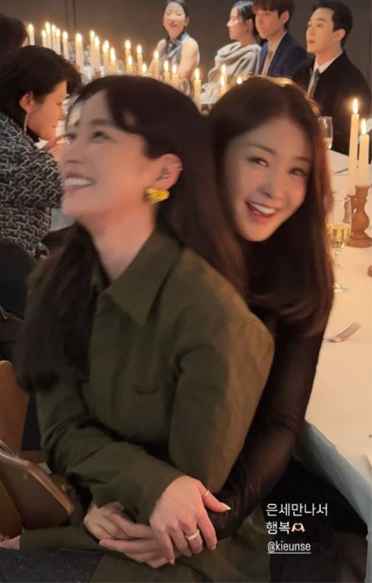 공개된 사진 속에는 한 명품 브랜드 행사에 참여한 이시영과 기은세의 모습이 담겨 있다. 서로를 끌어안은 채 환한 미소를 짓고 있는 두 사람의 미모가 살벌하게 아름다워 눈길을 사로잡는다.