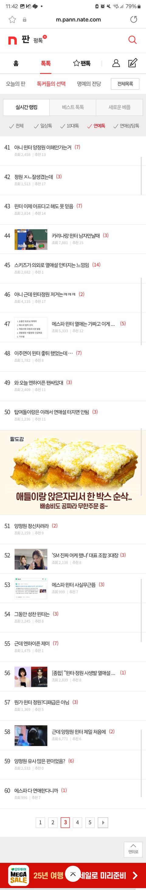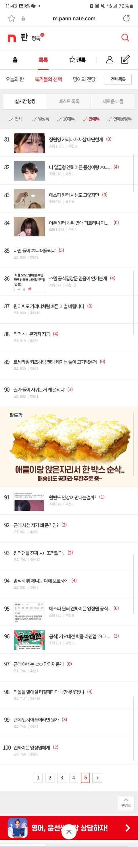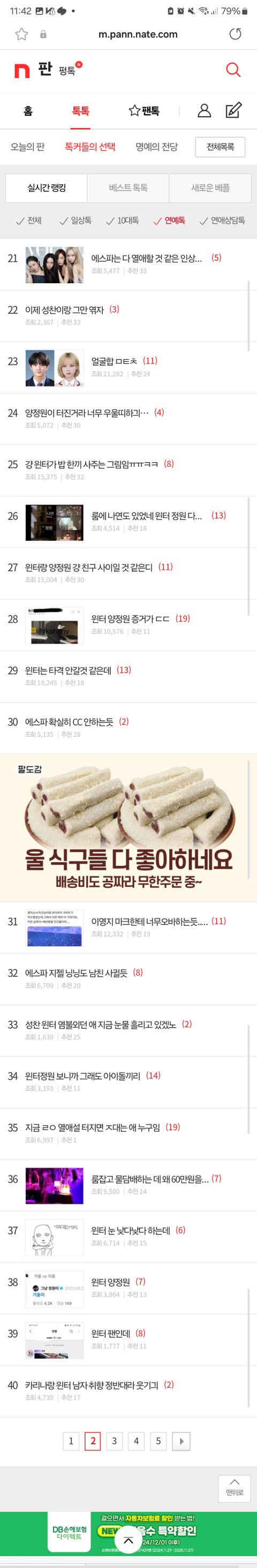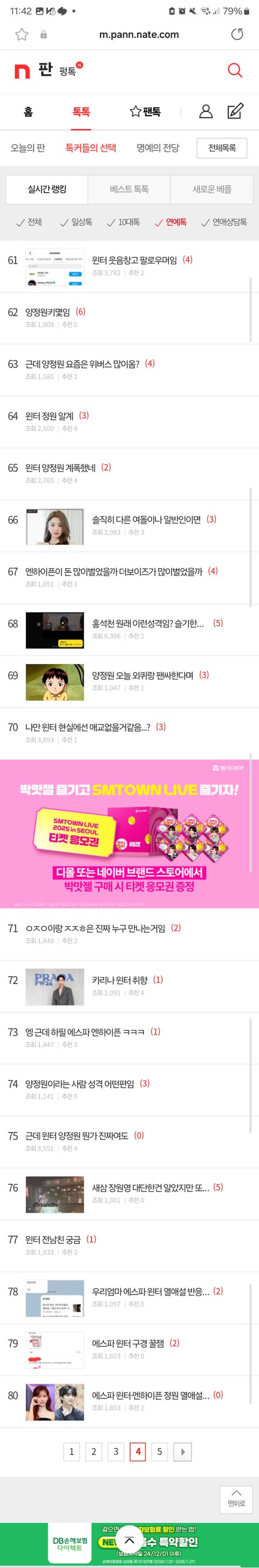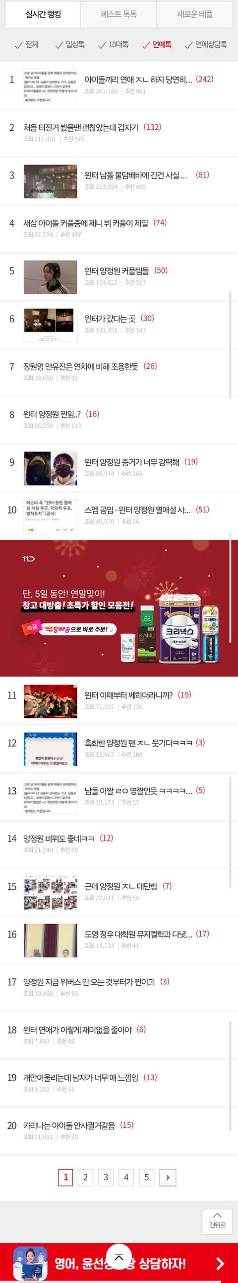 윈터 화제성 지리네 톡선 글 100개 중 몇개 빼고 도배수준임