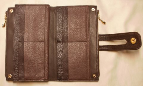 브라운,베이지 톤의 나파 가죽과 양가죽을 콜라보하여 휴대폰 수납 가능하게 제작한 장지갑입니다.(마디샤가죽공예)