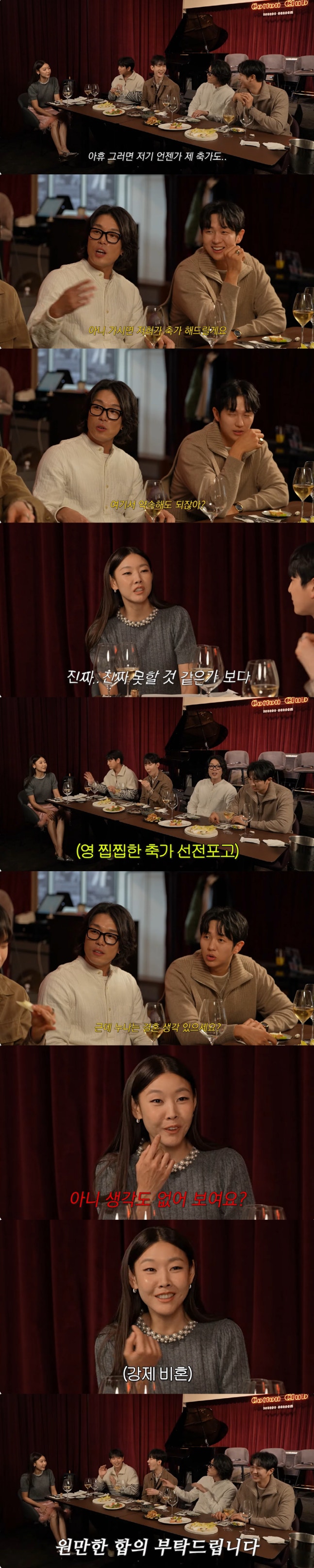이에 한혜진은 "그럼 왜 좀 더 일찍 하지 않았었냐. 일찍했다면 (금전적인걸) 좀 더 당길 수 있지 않았을까. 축가도 많이 가고 하면.."라고 궁금해했지만, 임슬옹은 단호하게 "저희는 그런 식으로 음악하지 않는다"고 말해 웃음을 안겼다.이어 한혜진은 "여기에 기혼자가 아무도 없지 않냐. 누가 제일 먼저 할 것 같냐"고 질문했다.